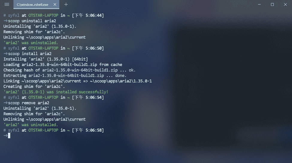 scoop unhold aria2? 清除旧版本,升级后 Scoop 并不会自动删除旧版本,而只是将当前版本切换到新版,当我们需要删除的时候就可以使用 scoop cleanup [<app>] 清除旧版本