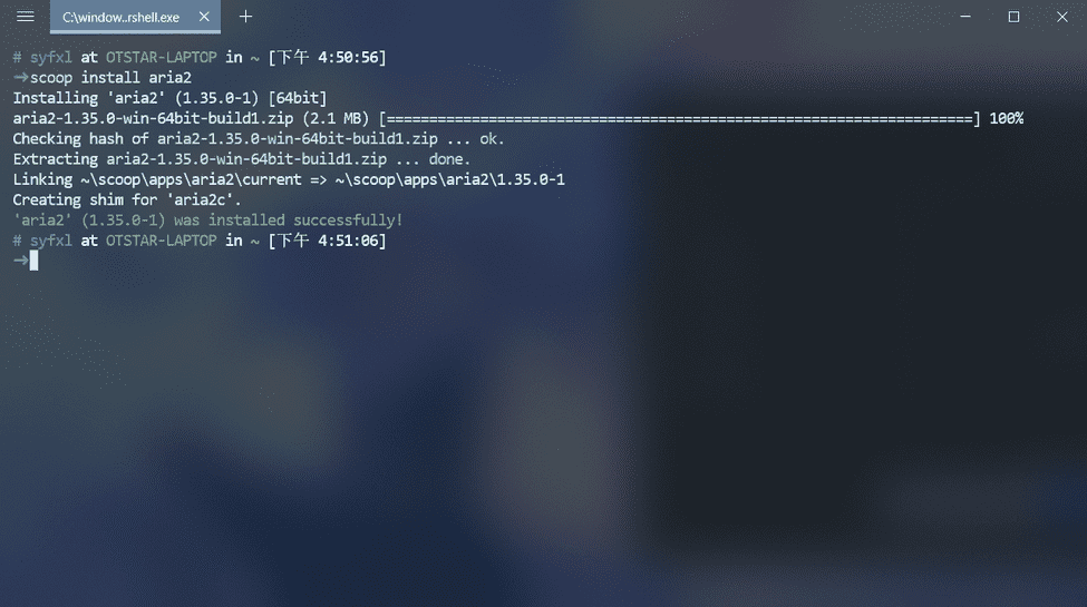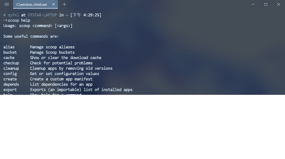 iwr -useb get.scoop.sh | iex静待脚本执行完成就可以了,安装成功后,让我们尝试一下: